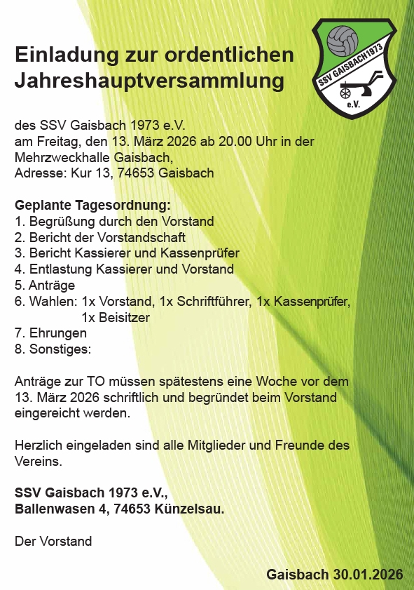 Hier - geht es zu Jahresbericht des SSV Gaisbach 1973 e.V.